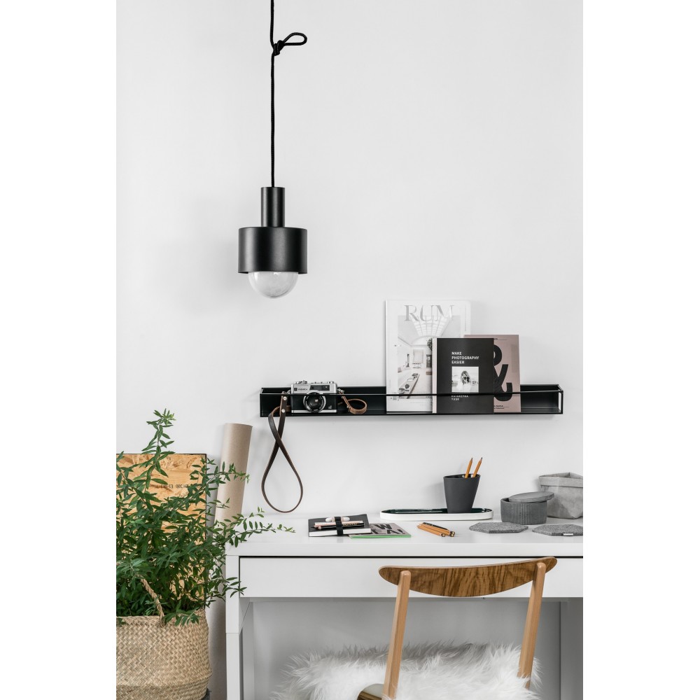 La lampada è dotata di un cavo intrecciato in tessuto nero lungo 107,5 cm, che consente di regolare liberamente l'altezza della sospensione: da una sporgenza corta e funzionale a una forma più appariscente sospesa in basso sopra la superficie. La forma del paralume è stata progettata per adattarsi a diversi tipi di sorgenti luminose. Una lampadina standard A60 rimane nascosta, creando un corpo coerente e chiuso, mentre una lampadina più grande, come una decorativa con un diametro di 125 mm, si estende oltre il suo contorno, cambiando completamente il carattere della lampada e aggiungendo un tocco di design.