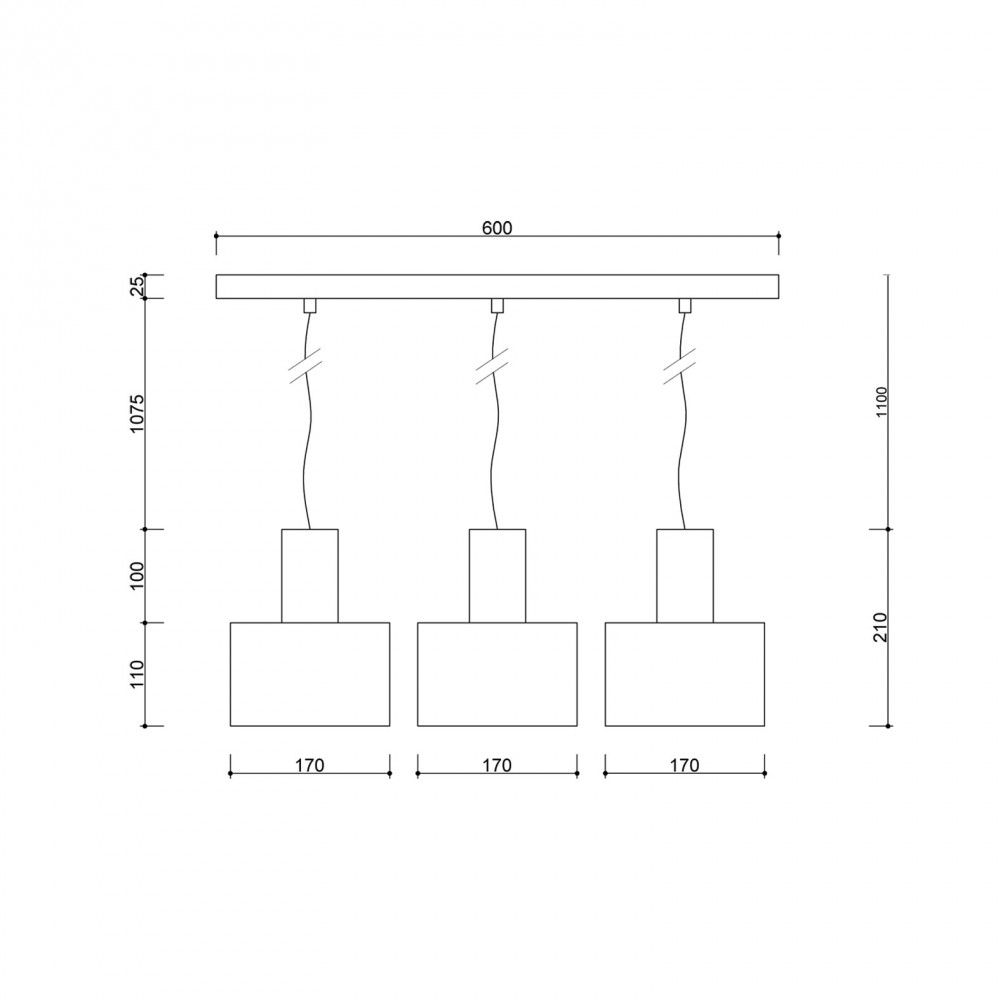 Una barra a soffitto lunga 60 cm nella stessa tonalità di nero mantiene la struttura in una linea estetica coerente, conferendo alla lampada un carattere moderno e strutturato. Tre sorgenti luminose indipendenti con filettatura E27 consentono un approccio creativo alla scelta delle lampadine, da quelle classiche a quelle decorative, facilitando l'adattamento dell'aspetto della lampada allo stile degli interni.