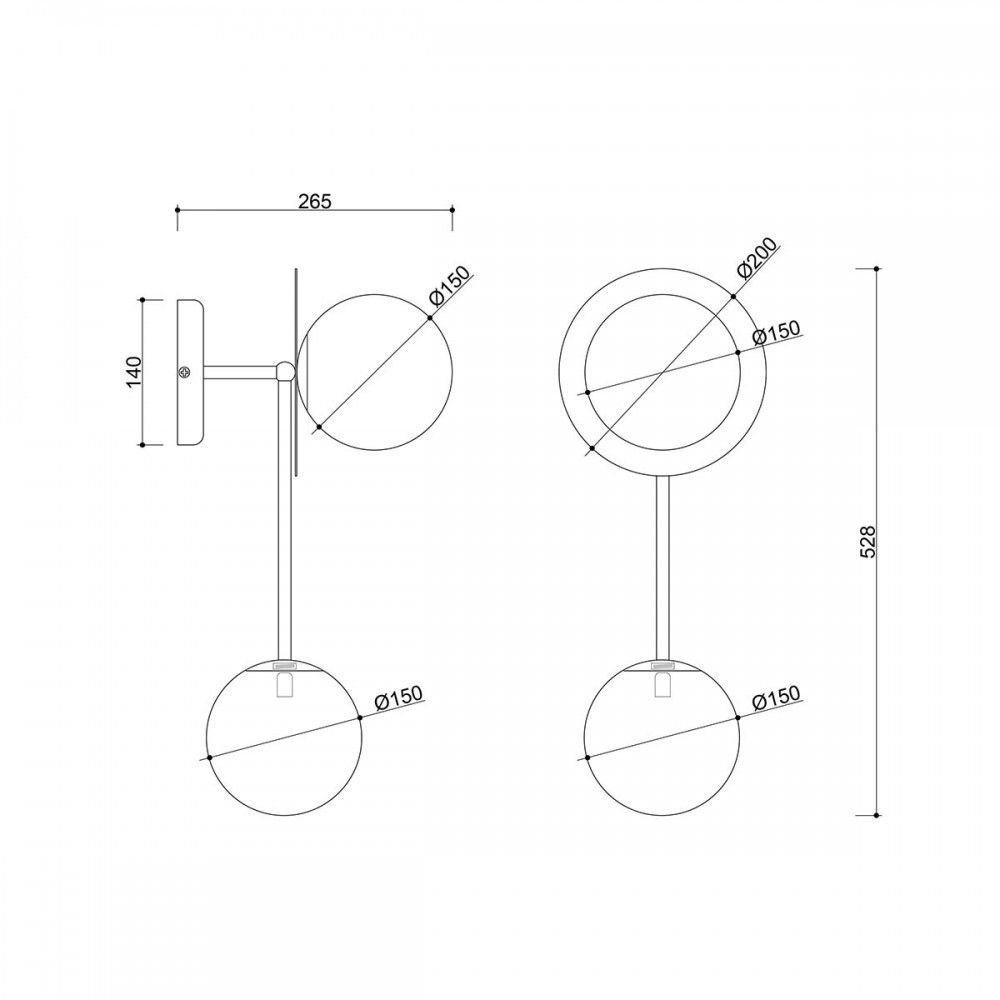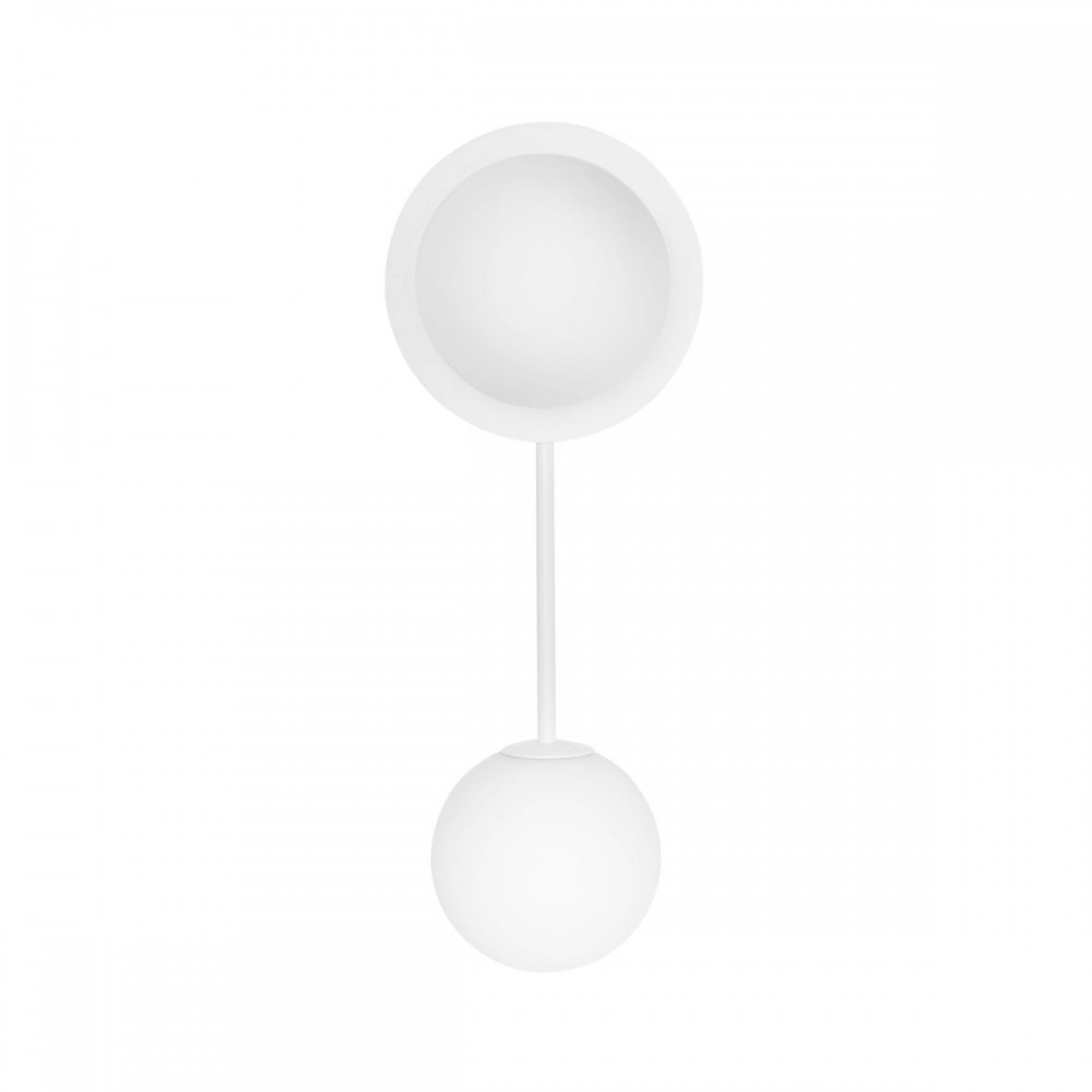 - lampada da parete, supporto a parete - altezza 53 cm - larghezza 20 cm - profondità 26,5 cm - due paralumi in vetro bianco smerigliato di 15 cm di diametro - struttura in metallo laccato in bianco strutturale - cavo bipolare 2 X 0,75mm2 - max 2x12W