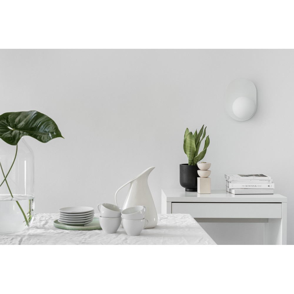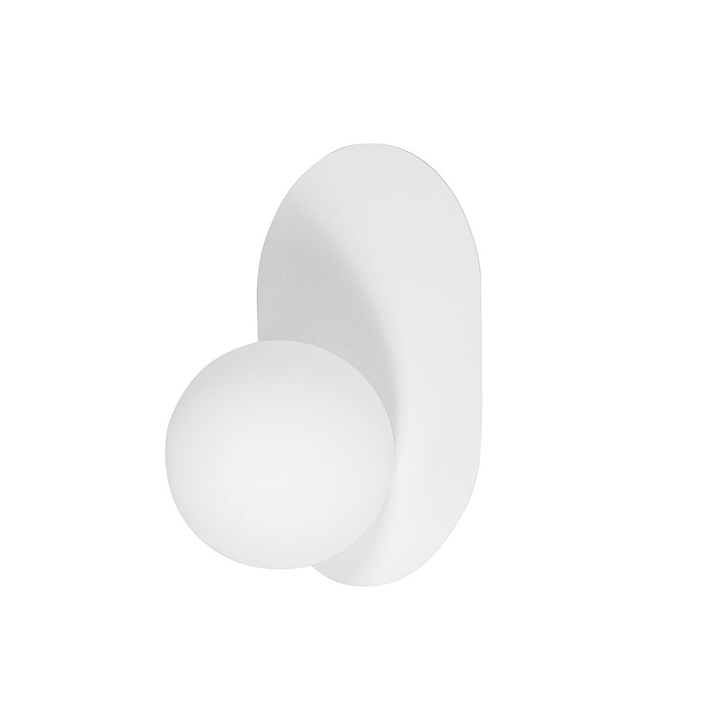 - lampada a parete / supporto a parete - metallo / vetro - bianco / bianco - altezza 30cm - larghezza 21cm - profondità 18cm - diffusore in vetro di 15cm di diametro in bianco opaco - supporto a parete verniciato in bianco strutturale - cavo bipolare 2 X 0,75mm2 - filettatura G9 - max 12W