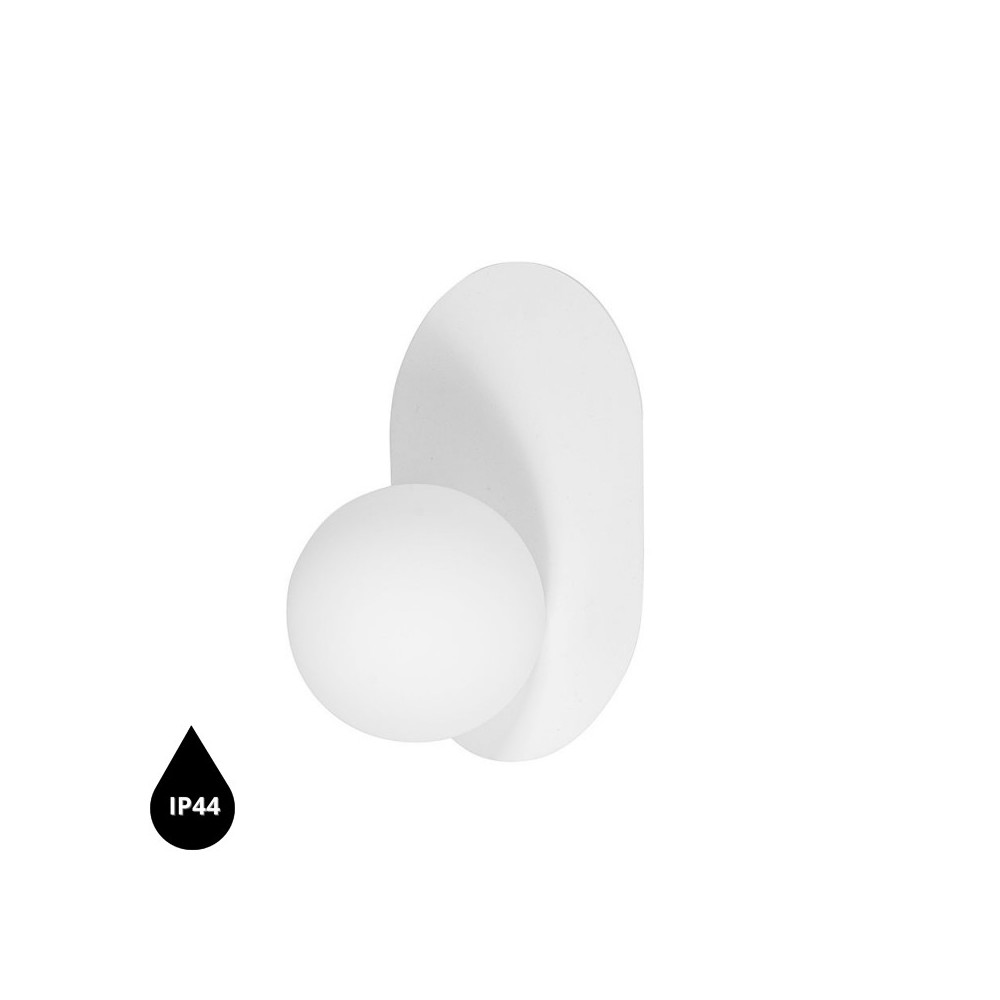 - lampada a parete / supporto a parete - metallo / vetro - bianco / bianco sporco - altezza 30cm - larghezza 21cm - profondità 18cm - diffusore in vetro di 15cm di diametro in bianco opaco - supporto a parete verniciato in bianco strutturale - cavo bipolare 2 X 0,75mm2 - filettatura G9 - max 12W - IP44