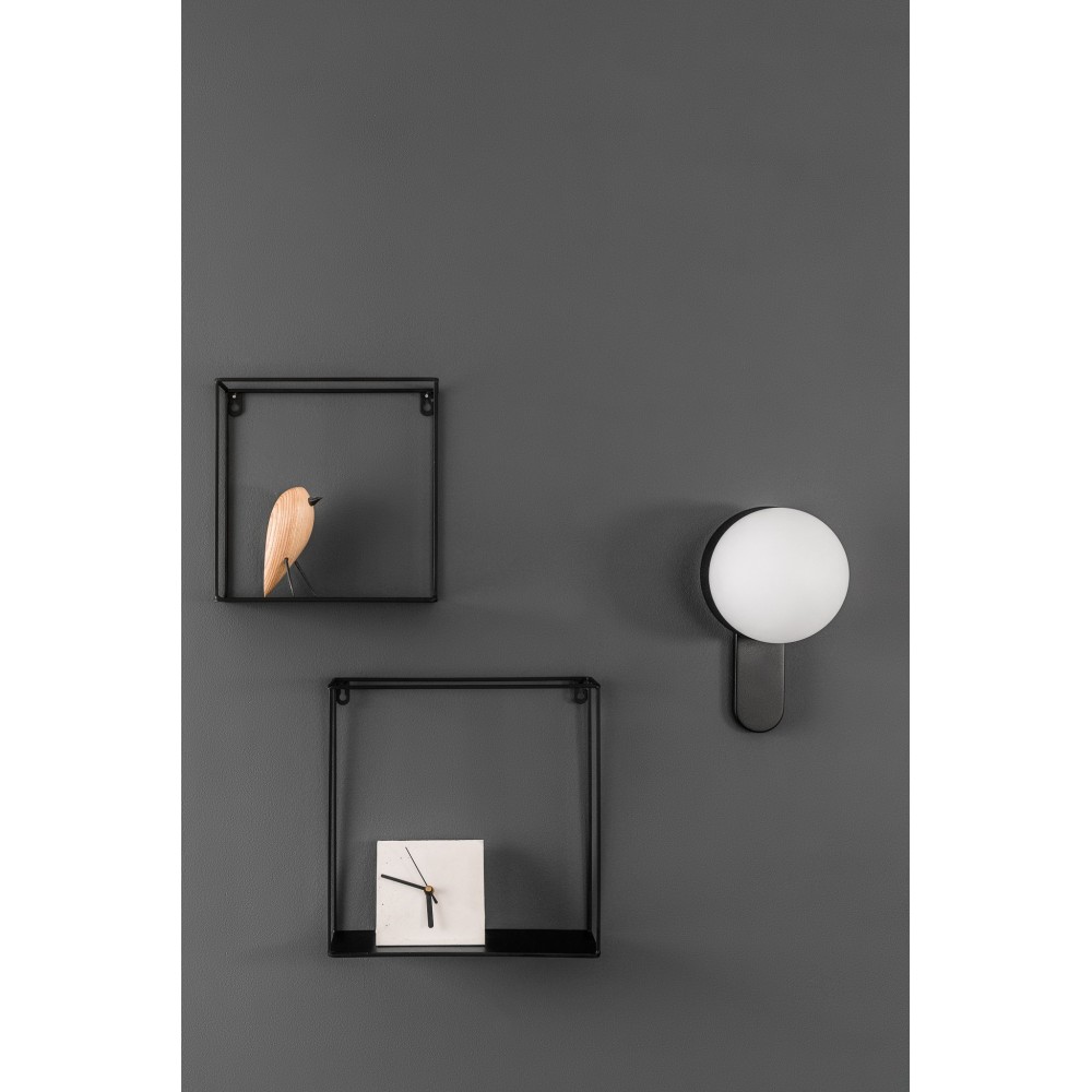 - lampada da parete, supporto da parete - colore nero (Jet Black RAL 9005) - materiale metallo, vetro - lunghezza 17,5cm - larghezza 15cm - altezza 26,5cm - diffusore in vetro bianco latte ⌀15cm - montatura strutturale laccata nera - filettatura G9 - max 12W LED - IP20