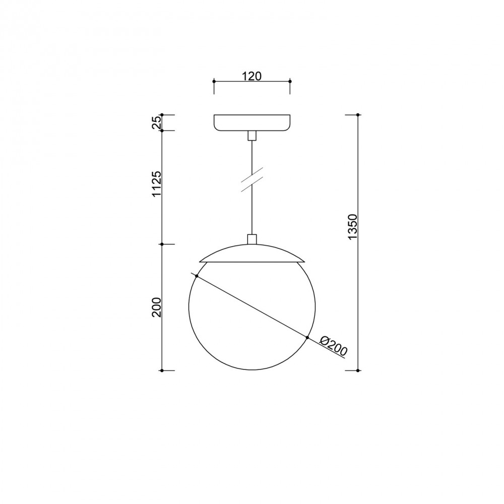 - Moderna lampada a sospensione con paralume sferico di 20 cm di diametro.