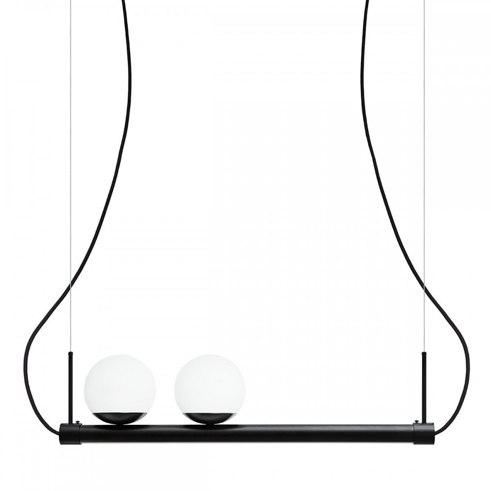 La lampada è costituita da una struttura orizzontale in metallo verniciato a polvere su cui sono posizionati due paralumi sferici in vetro con un diametro di 20 cm. Una striscia LED (25W, 3000K) è integrata nella parte inferiore della struttura per fornire una fonte di luce aggiuntiva. Su richiesta, l'illuminazione a LED può essere personalizzata con un colore neutro di 4000K. La lampada dispone anche di due prese per lampadine E27 (max 2×15W LED). Il tutto è sospeso da due cavi d'acciaio e da fili intrecciati in tessuto.