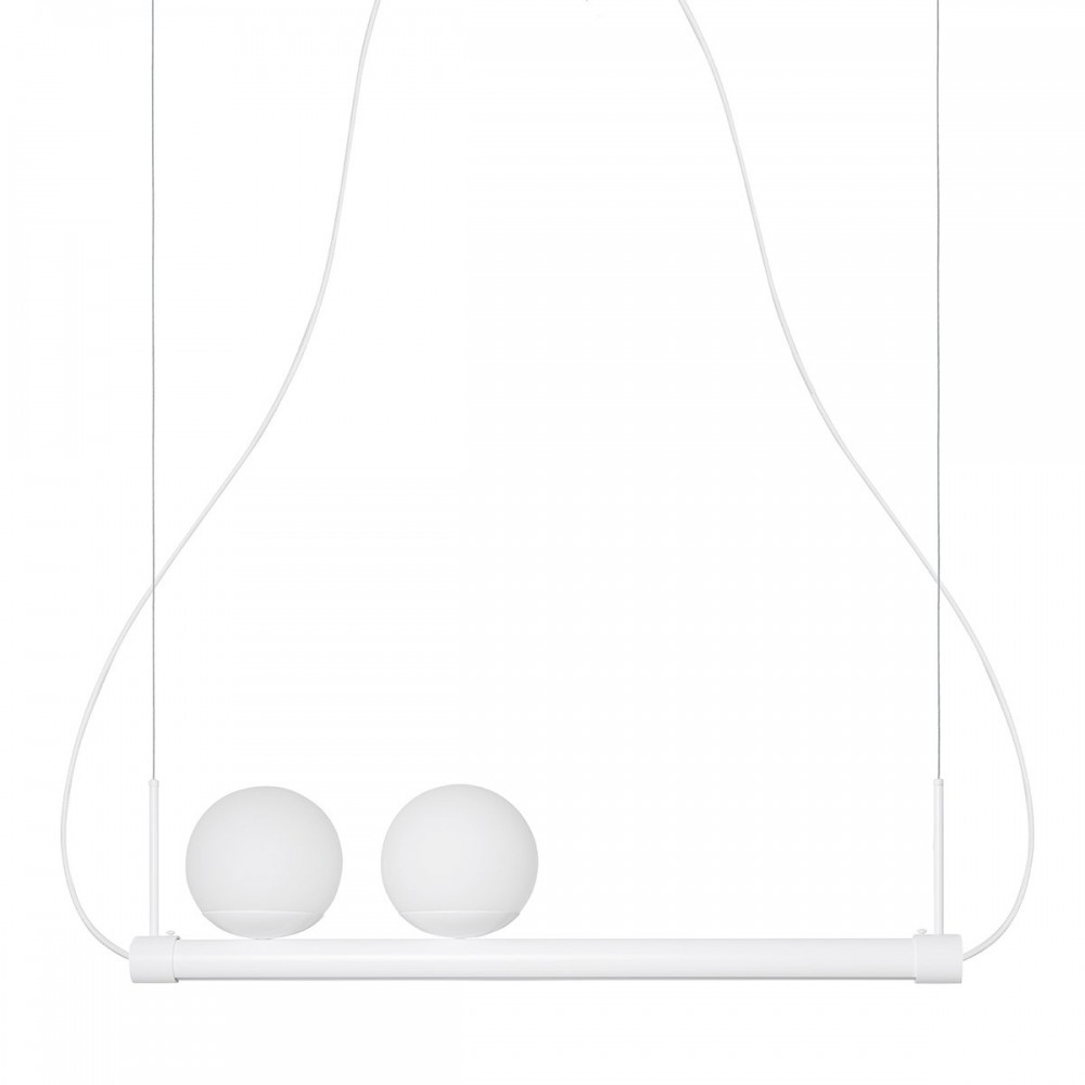 La lampada è costituita da una struttura orizzontale in metallo verniciato a polvere su cui sono posizionati due paralumi sferici in vetro con un diametro di 20 cm. Una striscia LED (25W, 3000K) è integrata nella parte inferiore della struttura per fornire una fonte di luce aggiuntiva. Su richiesta, l'illuminazione a LED può essere personalizzata con un colore neutro di 4000K. La lampada dispone anche di due prese per lampadine E27 (max 2×15W LED). Il tutto è sospeso da due cavi d'acciaio e da fili intrecciati in tessuto.