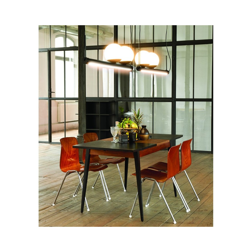La lampada a sospensione della collezione Ligne strizza l'occhio alle forme semplici e geometriche. Due sfere bianco latte appoggiate su una trave d'acciaio orizzontale creano una composizione minimalista e armoniosa. È dalla parola francese "ligne" (linea) che la lampada prende il nome, riflettendo l'idea di movimento ed equilibrio allo stesso tempo. Il design è dominato da linee pulite, colori classici e un sottile gioco di proporzioni. Il design complessivo crea una forma moderna che si adatta facilmente a una varietà di stili di interni, dallo scandi e moderno al loft e all'eclettismo.
