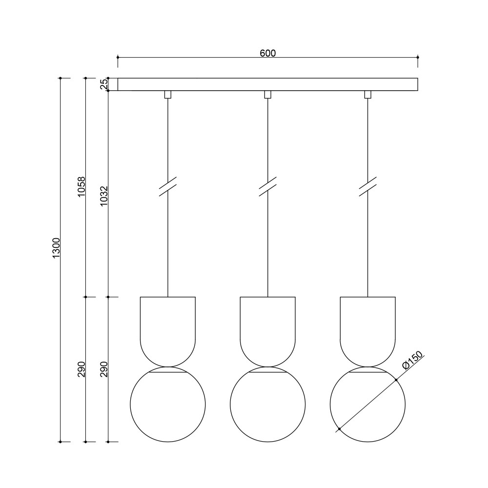 - lampada da soffitto, lampada a sospensione - nero (Jet Black RAL 9005) - materiale metallo, vetro - lunghezza 60cm - larghezza 15cm - altezza 29cm - lunghezza totale 130cm - tre paralumi in vetro bianco latte ⌀15cm - supporto strutturale laccato nero - 3x cavo in poliestere intrecciato nero 103,2cm - filettatura G9 - max 3x12W LED - IP20.