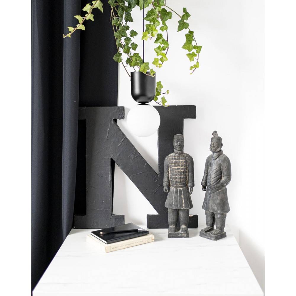 La lampada Luoti è costituita da un corpo in metallo verniciato a polvere e da un paralume in vetro con finitura lattiginosa. La delicata sfera (⌀15 cm) contrasta con il solido corpo cilindrico, creando un duo coeso e moderno. Il tutto è sospeso da un cavo intrecciato in poliestere (98,5 cm). La sorgente luminosa è una lampadina LED intercambiabile con attacco G9 (max 12W), che consente di regolare facilmente l'intensità dell'illuminazione a seconda delle esigenze.