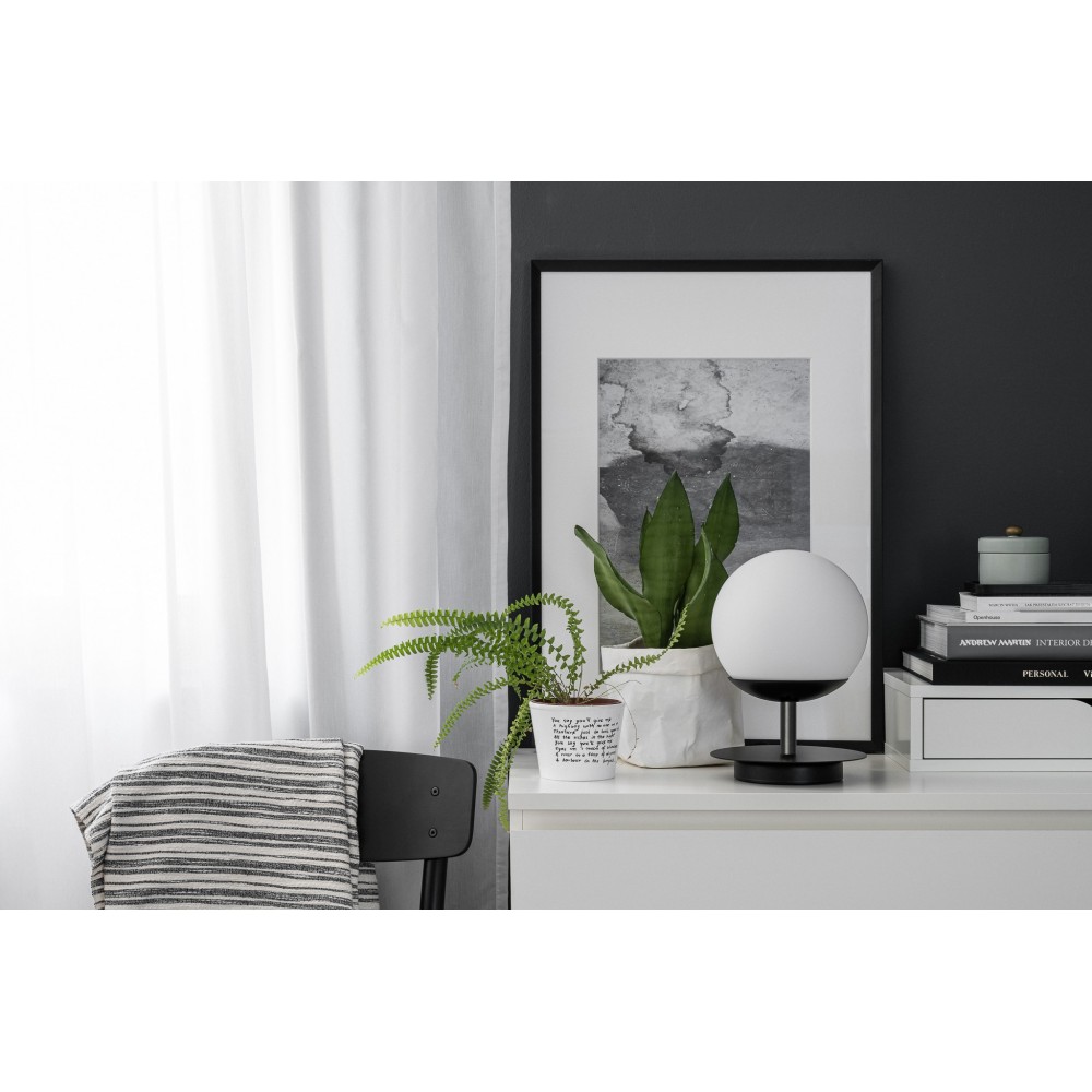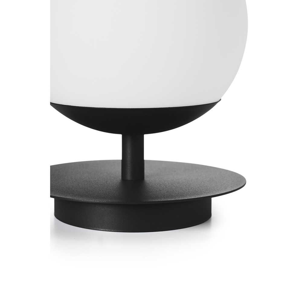 - lampada da tavolo - metallo / vetro - nero / bianco - altezza 27cm - diametro 20cm - diffusore in vetro bianco smerigliato fi 20cm - base strutturale nera fi 14cm - disco in metallo fi 20cm - 2 X 0,75mm2 cavo intrecciato nero lungo 150cm - spina e interruttore neri - filettatura E27 - max 15W