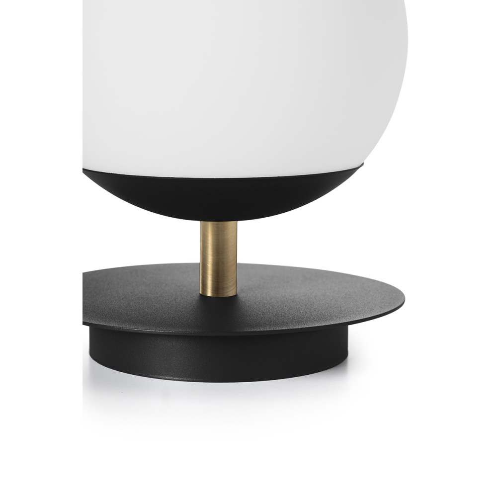 - lampada da tavolo - metallo/basso/vetro - nero/bianco - altezza 27cm - diametro 20cm - diffusore in vetro bianco smerigliato fi 20cm - base strutturale nera - disco in metallo fi 20cm - 2 X 0,75mm2 cavo intrecciato nero lungo 150cm - spina e interruttore neri - filettatura E27 - max 15W