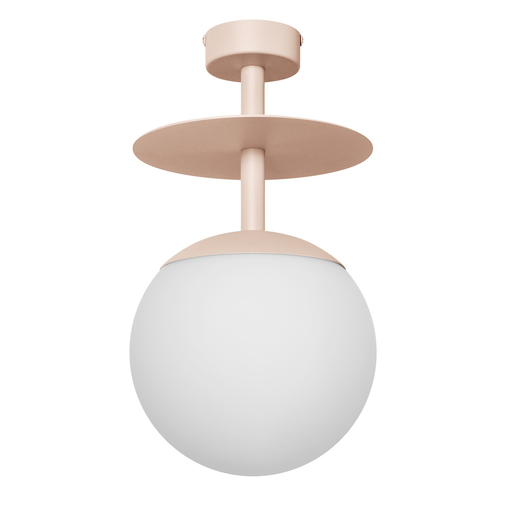 -lampada da soffitto - materiale metallo, vetro - colore beige (Soft Peach) - altezza 37cm - diametro 20cm - diffusore in vetro bianco smerigliato fi 20cm - griglia strutturale da soffitto laccata beige fi 8cm - disco in metallo fi 20cm - cavo bipolare 2 X 0,75mm2 - filettatura E27 - max 15W - IP20