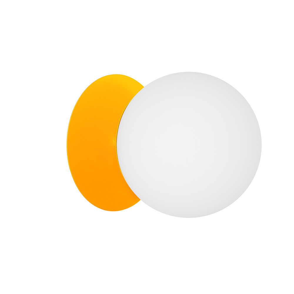 - lampada da parete, supporto da parete, plafond - materiale metallo, vetro - colore melone (giallo melone RAL 1028) - lunghezza 26,6cm - larghezza 20cm - altezza 20cm - paralume in vetro bianco smerigliato fi 20cm - supporto da parete strutturale laccato melone fi 14cm - disco in metallo fi 20cm - cavo bipolare 2 X 0,75mm2 - filettatura E27 - max 15W - IP20