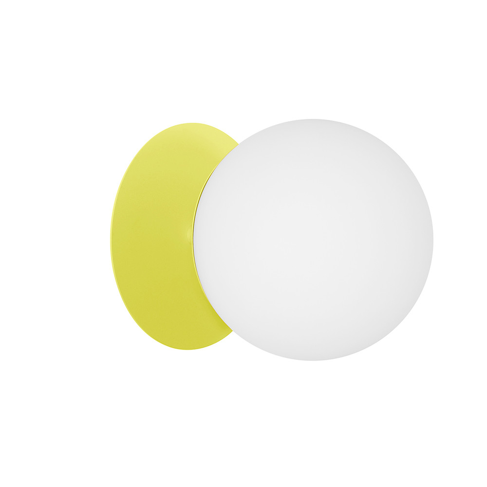 - lampada da parete, supporto a parete, plafond - materiale metallo, vetro - colore giallo (giallo zolfo RAL 1016) - lunghezza 26,6cm - larghezza 20cm - altezza 20cm - diffusore in vetro bianco opaco fi 20cm - supporto a parete verniciato in giallo strutturale fi 14cm - disco in metallo fi 20cm - cavo bipolare 2 X 0,75mm2 - filettatura E27 - max 15W - IP20