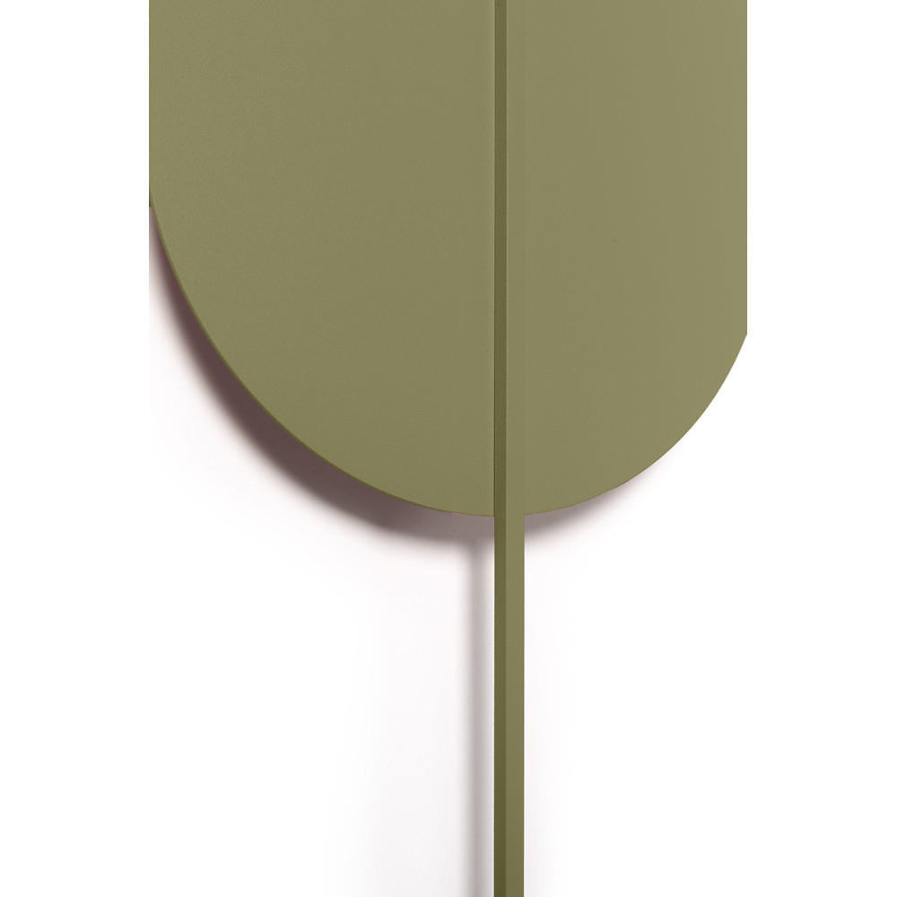 - lampada da parete, staffa da parete - colore verde oliva (Reed Green RAL 6013) - materiale metallo, ottone - lunghezza 3,8cm - larghezza 21cm - altezza 56,6cm - paralume verde oliva con elemento decorativo (fissato con magneti alla staffa da parete) - staffa in metallo bianco 8x8cm - filettatura 2xG9 - max 2x12W - IP20