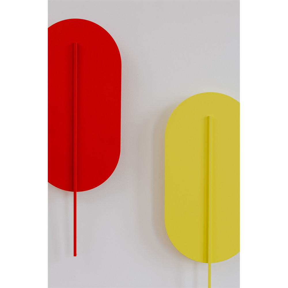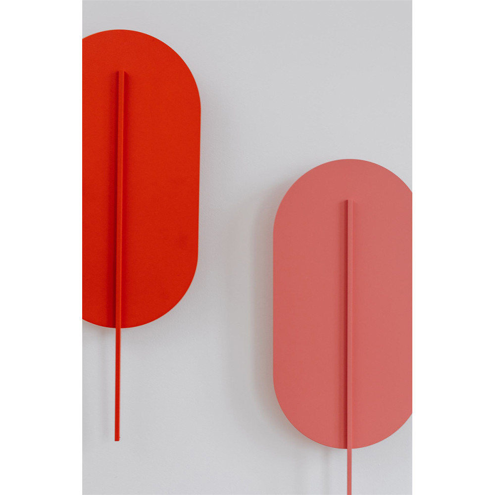 - lampada da parete, applique - colore rosso-arancio (Vermilion RAL 2002) - materiale metallo, ottone - lunghezza 3,8cm - larghezza 21cm - altezza 56,6cm - paralume rosso-arancio con elemento decorativo (fissato con magneti alla staffa a parete) - staffa in metallo bianco 8x8cm - filettatura 2xG9 - max 2x12W - IP20