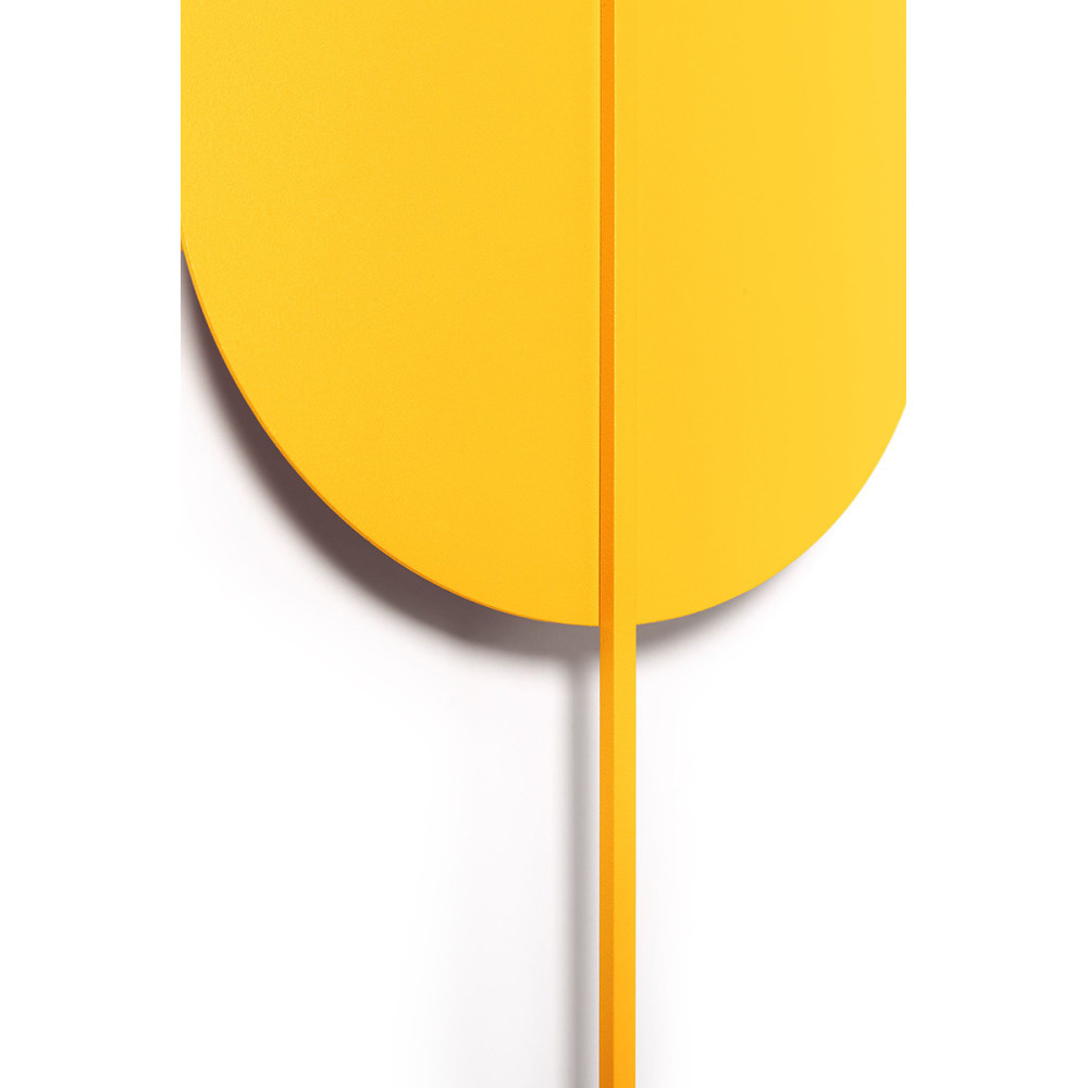 - lampada da parete, staffa da parete - colore giallo melone (Melon Yellow RAL 1028) - materiale metallo, ottone - lunghezza 3,8cm - larghezza 21cm - altezza 56,6cm - paralume melone con elemento decorativo (fissato con magneti alla staffa da parete) - staffa in metallo bianco 8x8cm - filettatura 2xG9 - max 2x12W - IP20