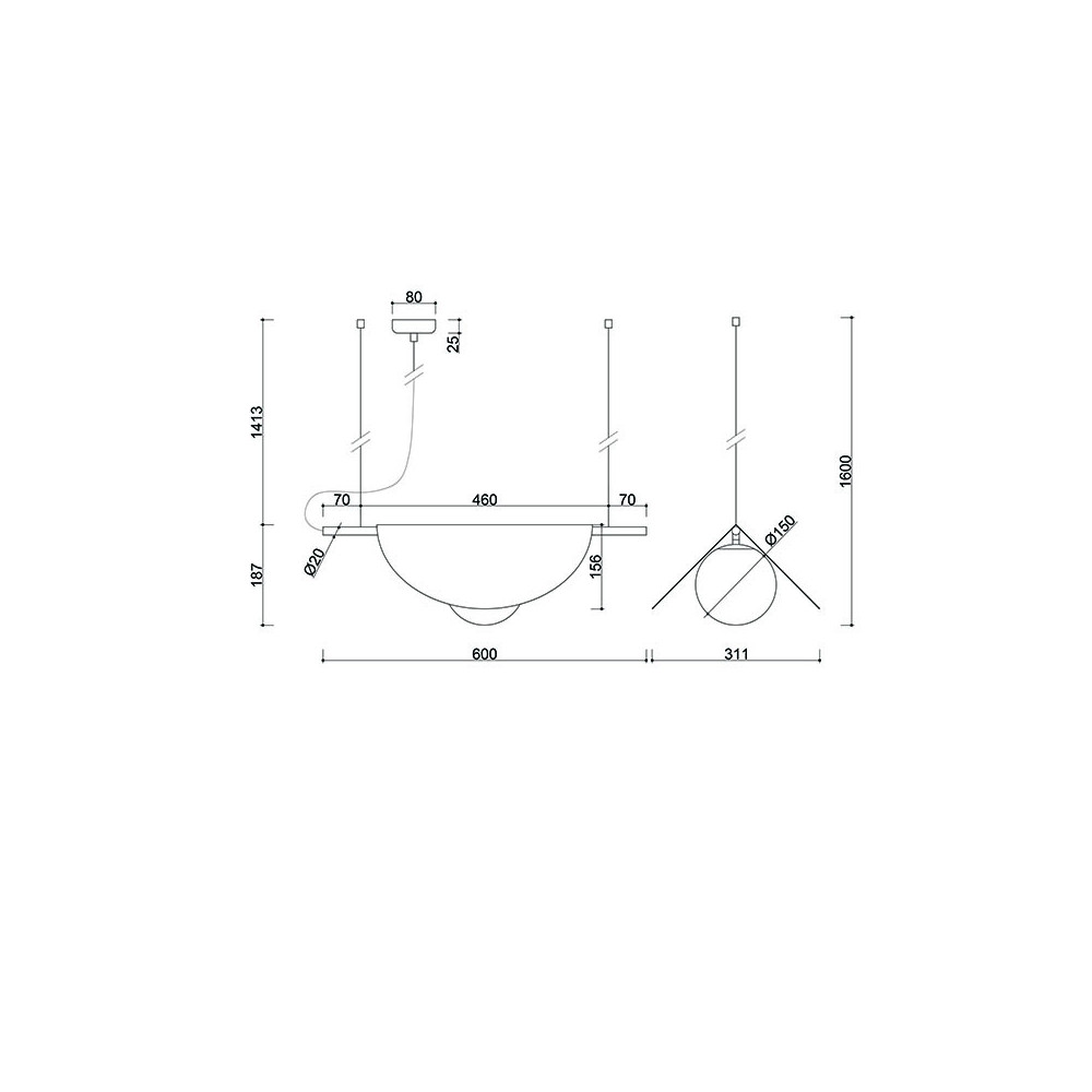- lampada da soffitto, lampada a sospensione - nero, bianco - materiale metallo, vetro - altezza 160cm - larghezza 60cm - profondità 31cm - diffusore in vetro bianco⌀15cm - struttura in metallo nero - cavo in acciaio 2x 150cm - cavo in...
