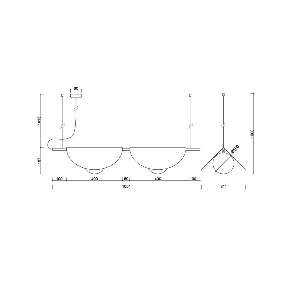- lampada da soffitto, lampada a sospensione - bianco - materiale metallo, vetro - altezza 160cm - larghezza 105cm - profondità 31cm - 2x paralume in vetro bianco ⌀15cm - struttura in metallo bianco - 2x filo...