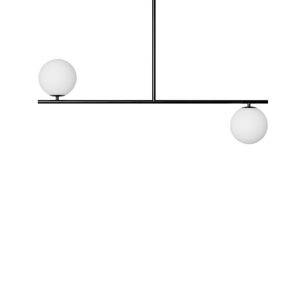 - lampada a sospensione, lampada a soffitto - dimensione M - nero, bianco - materiale metallo, vetro - altezza 82cm - larghezza 90cm - profondità 15cm - 2x paralume in vetro bianco ⌀15cm - struttura in metallo nero (altezza 60cm, larghezza 90cm) - cornice nera ⌀12cm - filettatura G9 - max 2x12W - ...