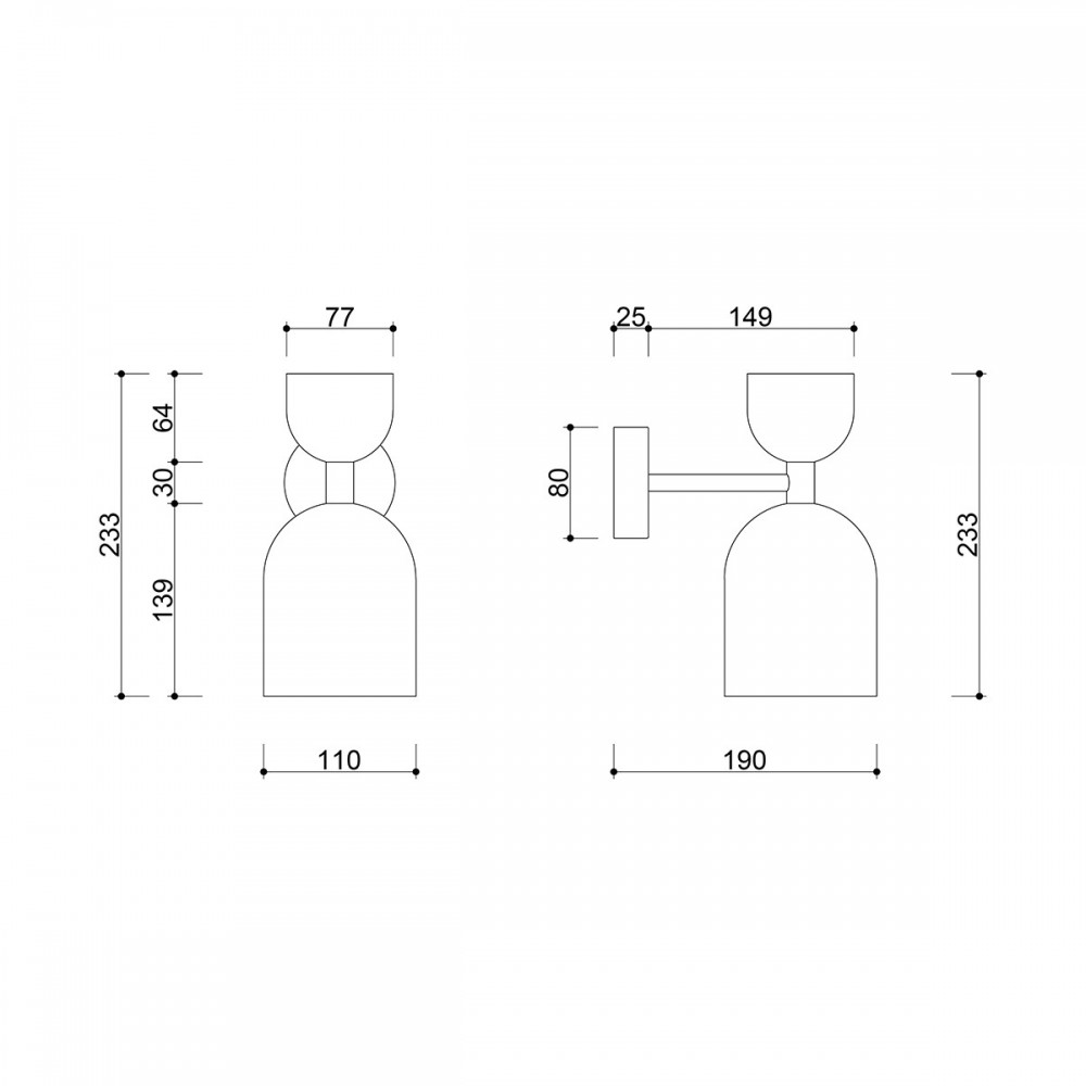 Il corpo della lampada è realizzato in metallo nei colori della tavolozza UMMO (bianco RAL 9003, nero RAL 9005, giallo RAL 1016, melone RAL 1028, rosa RAL 3014, rosso-arancio RAL 2002, bordeaux RAL 3004, blu navy RAL 5003, blu RAL 5014, oliva RAL 6013, beige), che le conferiscono un carattere elegante e universale. Il delicato tubo che collega i paralumi aggiunge un tocco sottile, sottolineando il suo design sofisticato. Le dimensioni della lampada da parete sono: 19 x 11 x 23,3 cm.