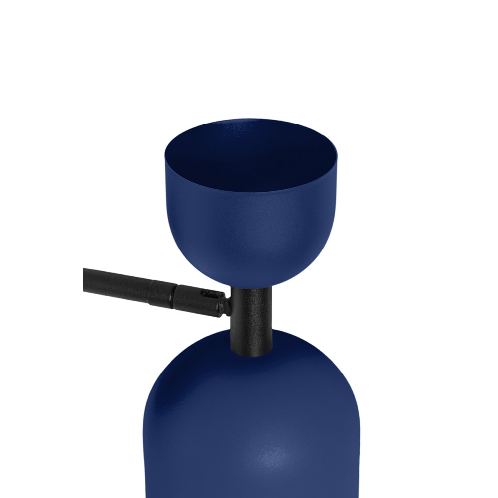 - lampada da parete, staffa da parete - colore: blu navy (Sapphire Blue RAL 5003), nero (Jet Black RAL 9005) - materiale: metallo - lunghezza 19cm - larghezza 11cm - altezza 23,3cm - paralume strutturale in metallo blu fi 11cm - staffa da parete strutturale laccata nera fi 8cm - cavo bipolare 2 X 0,75mm2 - filettatura GU10 - max 10W