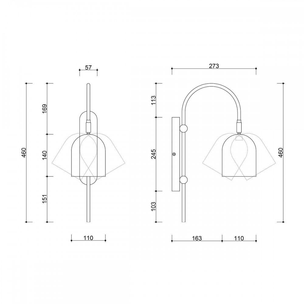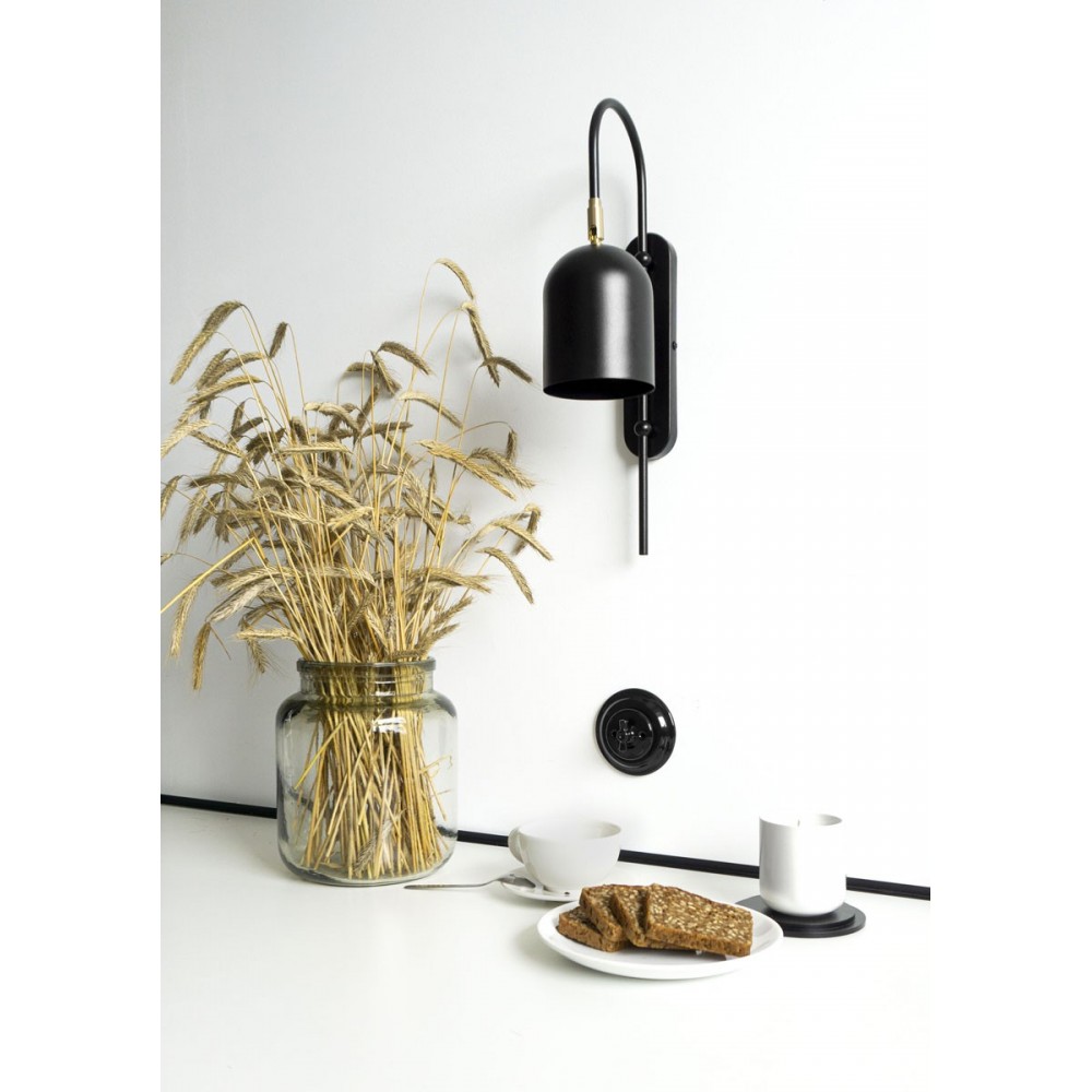- lampada da parete lampada da parete - altezza 46 cm - profondità 27,3 cm - larghezza 11 cm - diffusore in metallo verniciato nero strutturale - montatura e lunetta in metallo verniciato nero strutturale - snodo in ottone grezzo - 2 X 0,75mm2 cavo bipolare - filettatura GU10 - max 10W.